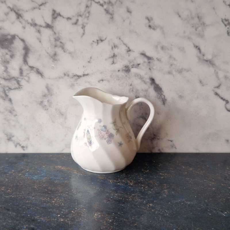 Wedgwood roomkannetje uit de serie April Flowers. Kannetje lijkt weinig tot nauwelijks gebruikt en is puntgaaf. De afmetingen zijn: hoog 7.2 cm, totale lengte is 8 cm.