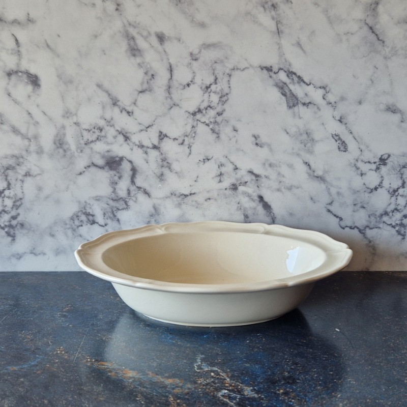 Wedgwood groenteschaal uit de serie Queen's Shape. De schalen zijn in nieuwstaat, geen verkleuring of beschadigingen. De afmetingen zijn 25 x 21 x 5.5 cm (lxbxh)